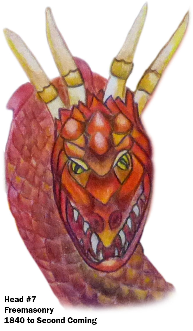 Head #7 = Freemasonry (1840 to 2nd Coming): A fraternal organization with secrets. Freemasonry, working through liberal western powers, gained the upper hand over the Habsburgs (Metternich was virtual ruler for the Habsburgs) when Lord Palmerston successfully orchestrated the treaty to save the Ottoman Empire from Egyptian takeover in 1840. This marked a monumental shift in power as London became the new center of European affairs instead of Vienna. The way was paved for this shift through the spreading of new ideas (Age of Enlightenment) and the many revolutions of the 1800s. The history of these movements and revolutions are inextricably interwoven with Freemasonry. They are rooted in Masonic principles and largely initiated and implemented by Freemasons and the many other secret societies patterned after Freemasonry and started by Freemasons. Secret societies have their foundation in Freemasonry, and it has its foundation in Britain. British ideas, such as constitutionalism, spread across Europe and to the new world via Freemasonry. Lord Palmerston, most of the British royal family, key politicians, military leaders, clergy and many others were all Freemasons. Rulers in the Roman realm (now much of Europe, South America, USA, Canada, Australia, etc.) have been either Freemasons or ruling within the framework of a Freemasonry-shaped government. Freemasonry promotes humanism, spiritualism and ecumenism, spreading the wine of Babylon of the 7th Trumpet. (See more information on Head #7 and Trumpet #7.)